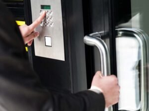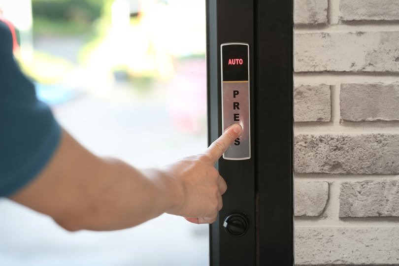 Gallery A man hand pressing a button for opening door in a coffee shop or a restaurant. xr:d:DAFtJtvgIkw:21,j:9189996609938353317,t:23090117